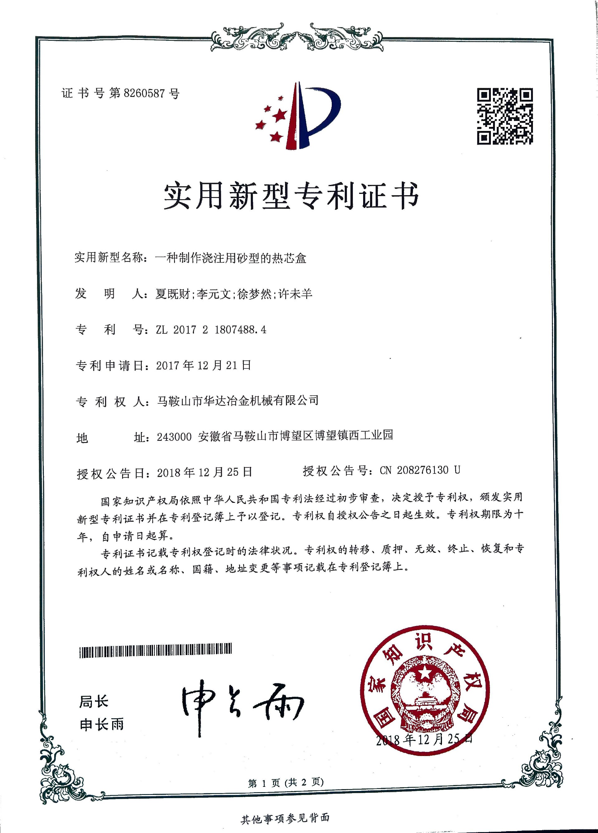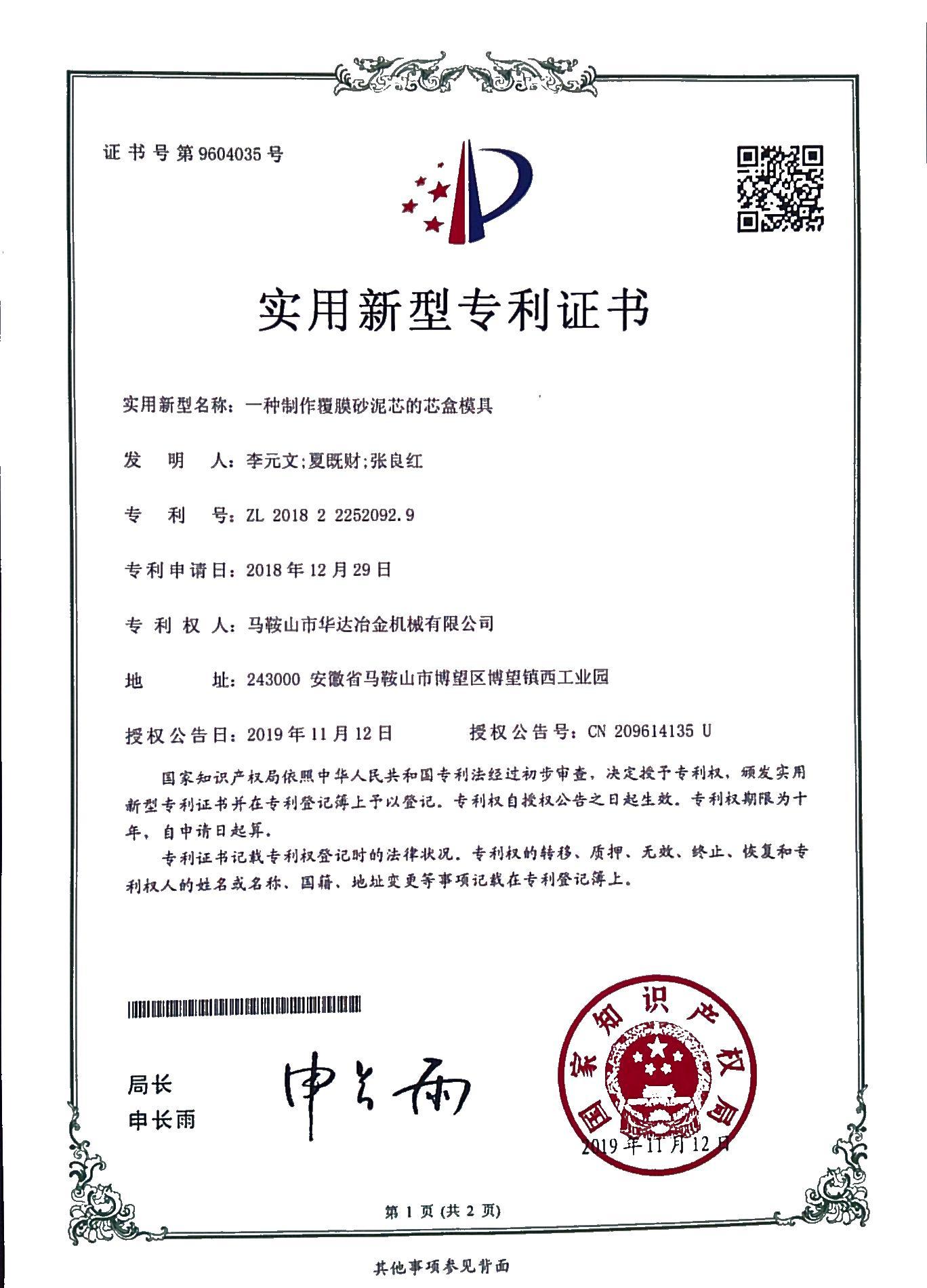 一种制作覆膜砂泥芯的芯盒模具专利证书